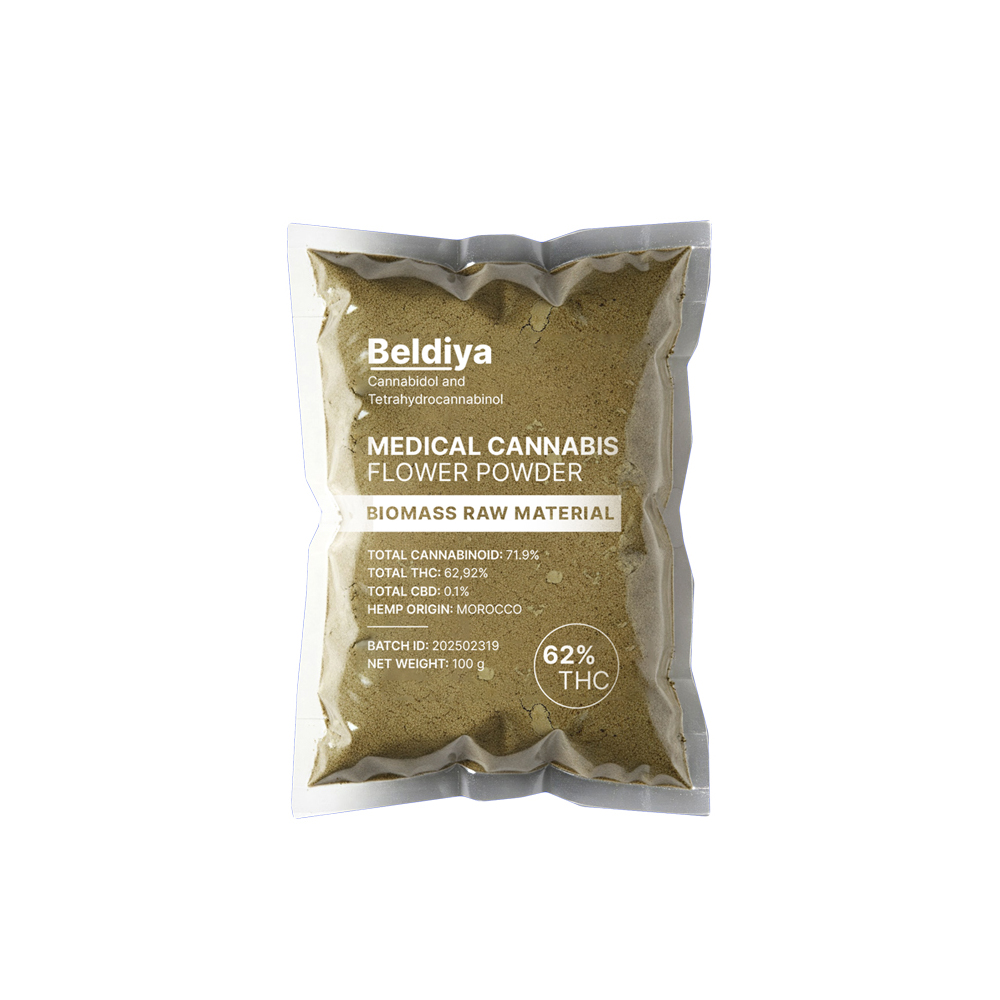 Our Premium traditional Moroccan Beldiya flower powder rich in cannabinoids and therapeutic terpenes, Ethically harvested and processed using artisanal methods to preserve potency, This powder offers consistent quality for pharmaceutical and nutraceutical formulations.